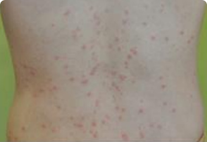 물방울 형태의 발진이 몸통과 전신에 발생합니다